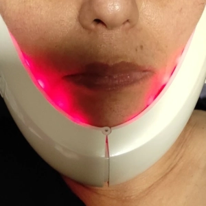 "The product definitely slims the face and defines the jawline. I use the lighting (blue/red) and light vibration at the same time, three times a week. I would say it took a month to see visible changes. I wanted to try this before I went to a plastic surgeon for cool sculpting and other treatments."